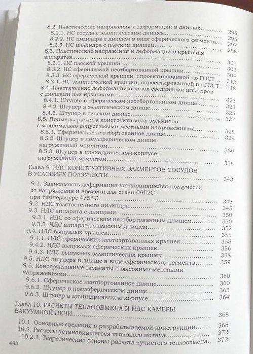 Показаны решения задач на прочность в упругопластической области для корпусов сосудов, их выпуклых и плоских днищ, крышек, горловин, фланцев и др. Разработана методика и даны решения задач прочности и остаточного ресурса для сосудов, работающих в области ползучести. Показаны примеры расчета теплопередачи различных теплообменных аппаратов с учетом лучистого и конвективного теплообмена.